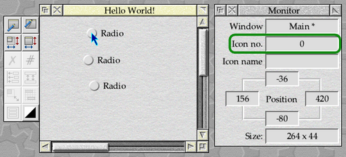 Next we need to add the radio icons. There is one in the Icon picker, so use Select to drag a copy over to the window being edited. This should appear as seen in Figure 19.5.