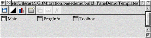 The first thing that we will need to do is design the pane itself. As far as the Wimp is concerned, panes are just normal windows, so we’ll go back to our template editor of choice (again, I’m using WinEd here, but other editors would also be fine) and add a new window called “Toolbox”. We can see that window in the browser in Figure 2.2, although the screenshot shows it after editing is complete – WinEd (and probably most other template editors) will give it a full set of scroll bars in the template browser by default.