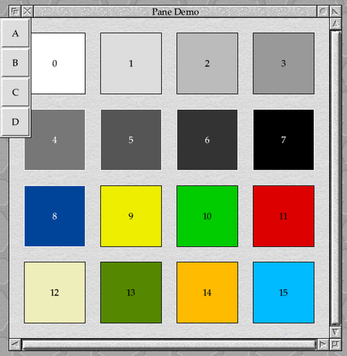 The other flag which we have set is Pane, which corresponds to the ‘window is a pane’ flag at bit 5 of the window flags. The Programmer’s Reference Manual is a little vague about what this flag does, but most developers will probably have been disappointed to discover that what it doesn’t do is cause the window follow its parent around the screen automatically! In fact it does a few important things, which we’ll discuss later in this chapter.