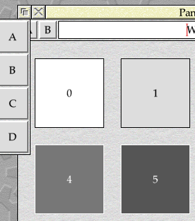 Although it works, there are a few rough edges with our new pane’s implementation as it stands. The first should be obvious as soon as the main window opens: the toolbar slices the top of the work area off, and obscures part of the first row of squares.
