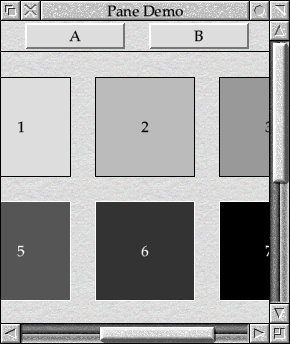 The problem that we have is that moving the scroll bars alters the scroll offsets for the main window’s work area, but – as we noted above – the the scroll offsets for the work areas of our panes have always been left at zero. Up to now this has been the required behaviour, but this new example is calling for something different.