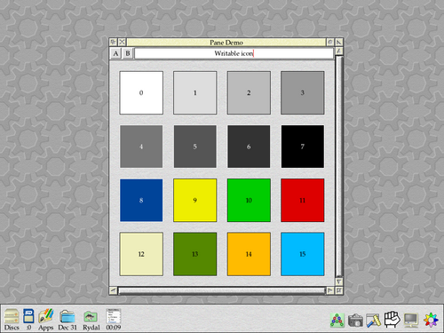 There’s one nicety missing from this version of the toolbar, however. Back in Section 3.7 we had arranged for the writeable icon to be cropped to fill the width of the toolbar, which gave a better visual appearance and ensured that the text was always visible. If we could implement that again, then it would make this Nested Wimp version complete.