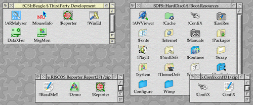 Reporter can be installed wherever you like, while according it its manual, Confix is best placed inside !Boot.Resources so that it’s seen when the machine starts up. Things should look something like Figure 9.1 afterwards.