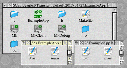 In addition to updating the call to wimp_initialise() to take its pointer to the application name from the main_application_name variable, we’re using both variables in the new call to error_initialise() – which initialises SFLib’s errors library. Note that we have to #include "sflib/errors.h" at the top of the file to be able to add this call.