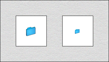 Since this is a sprite icon, the wimp_ICON_HALF_SIZE flag can also be used to change its appearance. If set, the Wimp scales the sprite to half-size when displaying it, which is used by the Filer to produce ‘small’ icons when small sprites aren’t available. Its effect can be seen in Figure 14.9.