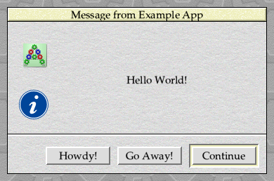 wimp_report_error(&error, wimp_ERROR_BOX_OK_ICON | wimp_ERROR_BOX_CANCEL_ICON, "Example App");