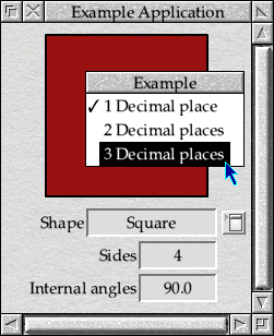If the code is compiled and the application run, the menu should appear as seen in Figure 25.3. Selecting different numbers of places from the menu should update the number in the Internal angles field, assuming that shape isn’t a circle!
